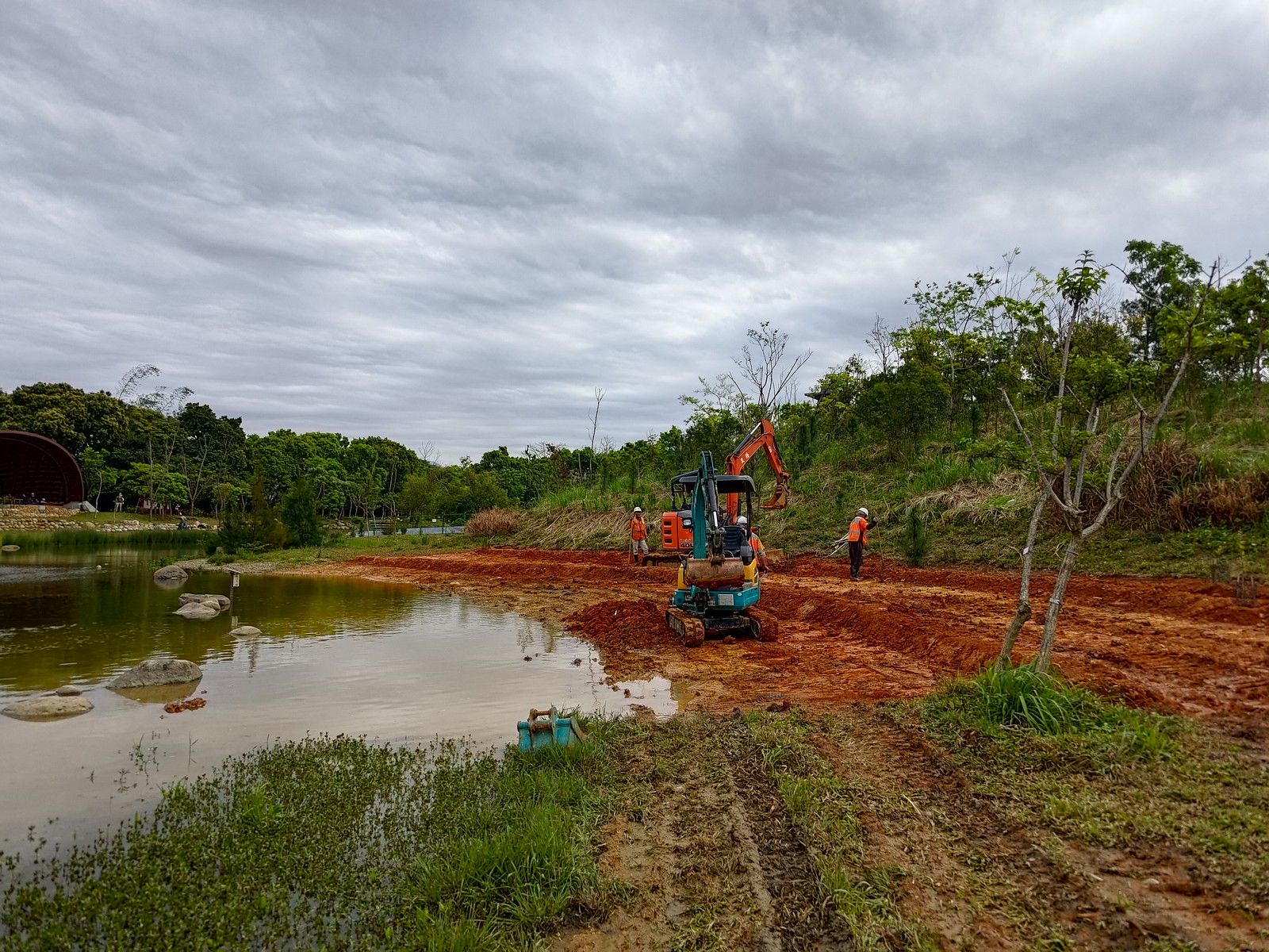 記者會現場,桃園市政府工務局景觀工程科科長陳翠慧透過簡報說明,為了引入珍稀物種,桃園市政府工務局、航空城工程處及相關工程團隊——中華工程、青境景觀設計、富石營造及永青營造等公司,決議啟動工程變更,並且在林試所協助下,得以在土地尚未擾動前,標記、採取土壤團塊。
