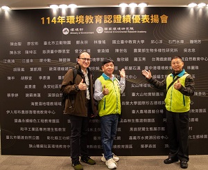 桃園市大力推廣的環境教育再傳佳績!環境部12月3日舉行「114年環境教育設施場所評鑑」頒獎典禮,主要頒發全國21處「環境教育機構及設施場所評鑑績優單位」(優異7處、優良14處)之獎項,桃園市共有三處場域脫穎而出,分別為新屋石滬、歐萊德綠建築總部榮獲「優異」及石門水庫榮獲「優良」等佳績。本次由新屋石滬郭先彰理事長、歐萊德綠建築總部葛望平董事長及石門水庫江明郎分署長代表受獎,充分展現桃園市在環境教育推廣、場域經營與課程創新上的深厚實力,成為全國矚目的環教亮點。